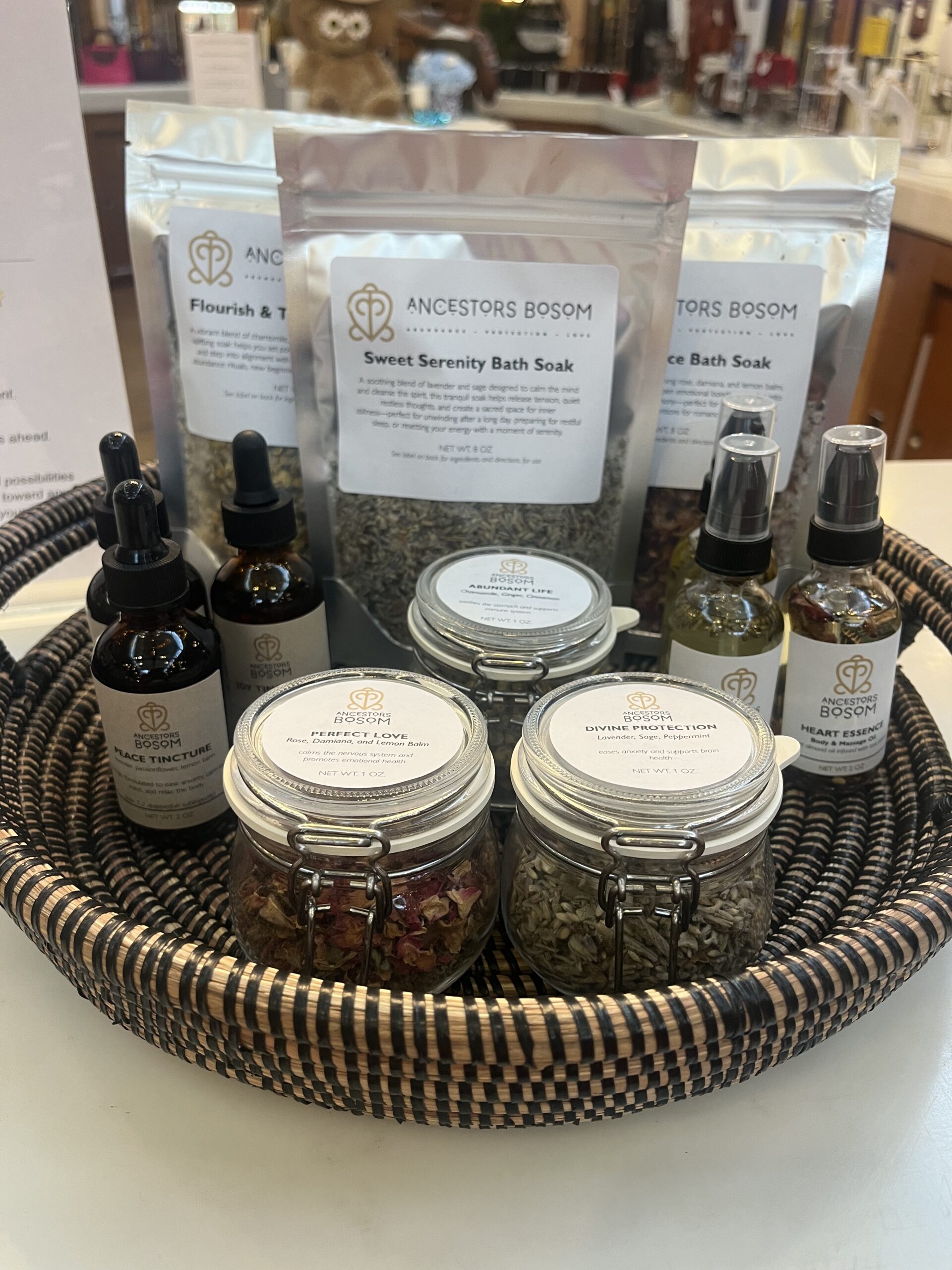 Ancestors Bosom Herbal Apothecary is a woman-owned, Black-owned herbal apothecary offering plant-based remedies rooted in ancestral wisdom and spiritual herbalism. Located in Savage Mill, the apothecary provides hand-blended loose-leaf teas, handcrafted herbal tinctures, oils, salves, and bulk dried herbs made in small batches with care and intention. Ancestors Bosom approaches wellness as a practice of remembrance—honoring the connection between spirit, mind, body, and lineage.